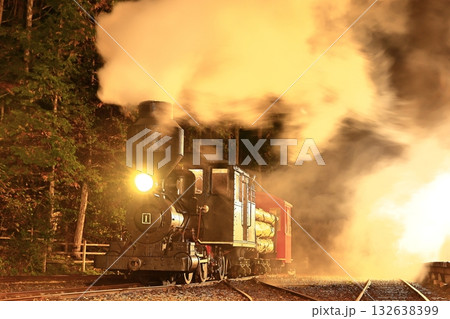 赤沢森林鉄道(木曽森林鉄道)ボールドウィン蒸気機関車 夜間撮影 夜汽車