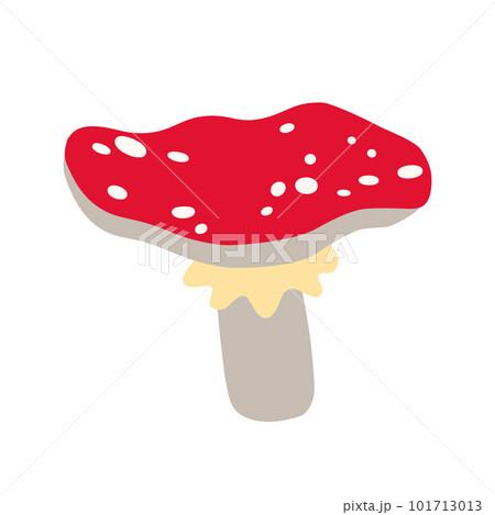 Hand drawn cute contemporary illustration amanita mushroom. Flat vector fly-agaric element in simple colored doodle style. Forest, nature, autumn sticker, icon or print. Isolated on white background.