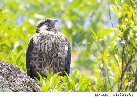 あくびをしているように見えるハヤブサ幼鳥