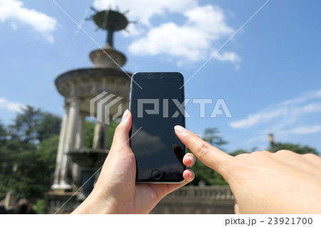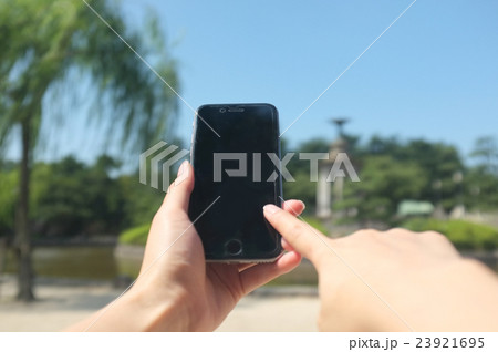 公園でスマートフォン