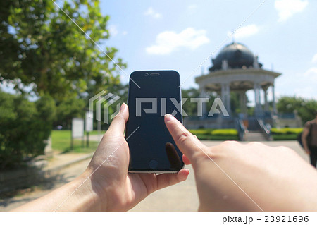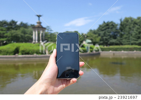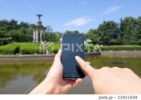 鶴舞公園でスマートフォン