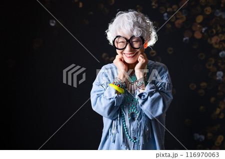 おしゃれと自由な自己表現を楽しむシニア女性 60代 70代