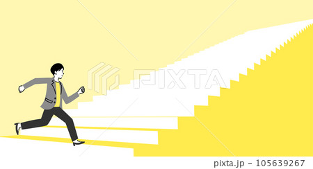 走る女性ビジネスマンと階段のイメージイラスト、ベクター