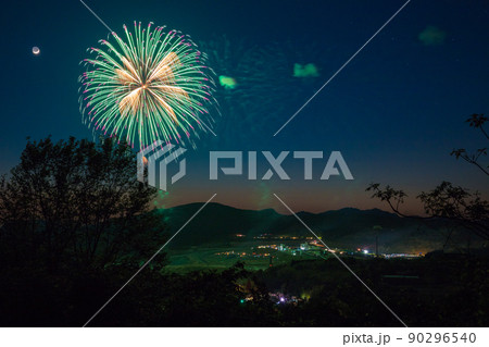 背景素材 打ち上げ花火 コピースペース有り 黒バック