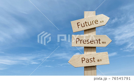 道しるべ3方向と青空_左空間_PastPresentFuture