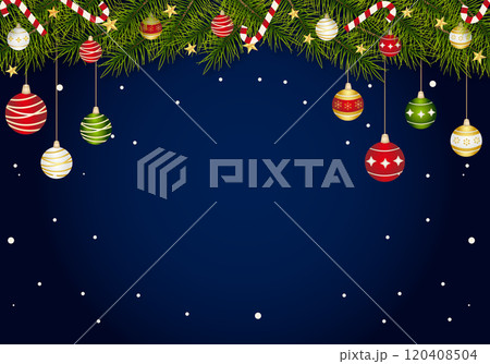 カラフルなクリスマスツリーの飾りのフレームイラスト