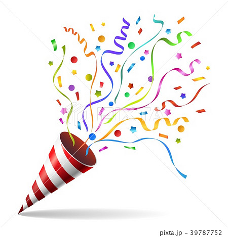 クラッカーの紙テープと紙吹雪が舞うパーティーのベクターイラスト背景素材:横位置