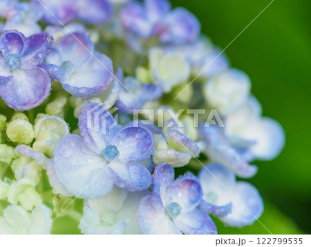 アジサイのアップ ウズアジサイ オタフクアジサイ 俯瞰