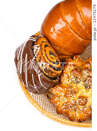 Fresh and tasty buns with with sesame and poppy seeds and roll w