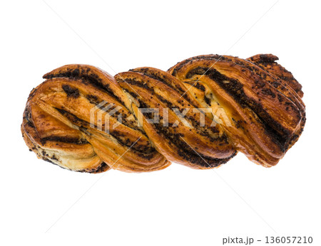 Ruddy, wicker bun with poppy seeds, on a white background in isolation