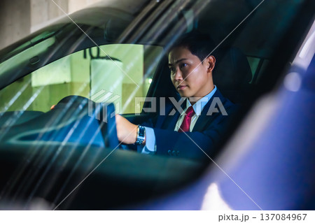 車内から見つめる男性