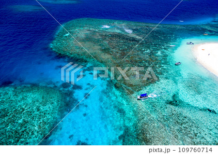 オセアニア・ポリネシアの島国ツバル 首都のフナフティ環礁フォンガファレ島の青が鮮やかなラグーン