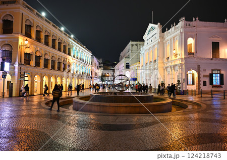 観光客で賑わう夜のセナド広場/マカオ