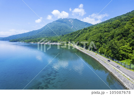 夏の支笏湖を空撮(ドライブイメージ)
