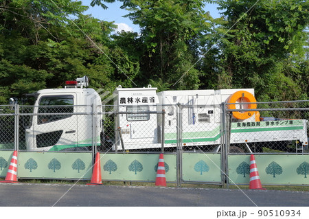 川の氾濫やゲリラ豪雨に活躍する車両(排水ポンプ車 農林水産省)