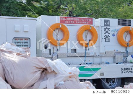 川の氾濫やゲリラ豪雨に活躍する車両(排水ポンプ車 国交省、農林水産省)