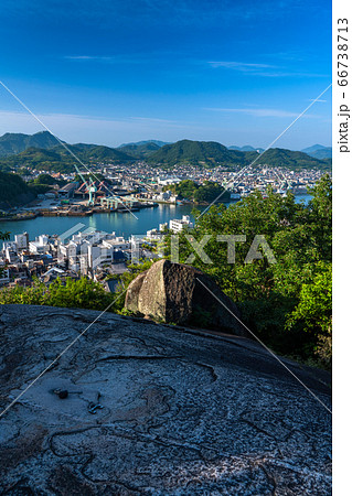 《広島県》早朝の尾道の街並み・ポンポン岩よりのぞむ風景