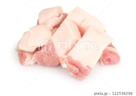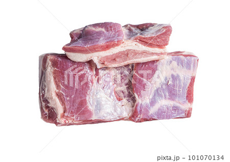 Raw pork belly with skin on a butcher table. Isolated on white background
