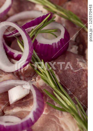 Raw pork on the bone or rib sliced with salt, spices and herbs
