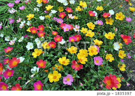 ガーデニング カラフルに沢山咲いた ポーチュラカ