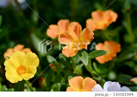 夏のガーデニングのの主役 きれいに咲いた満開のカラフルポーチュラカ
