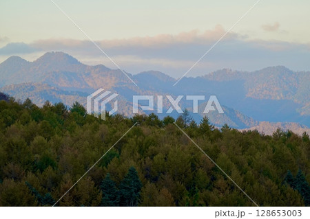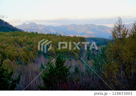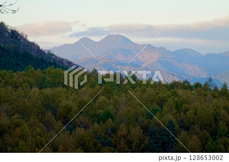 開田高原 開田高原マイアスキー場近隣から北東を見た山並みの夕景 長野県木曽郡木曽町