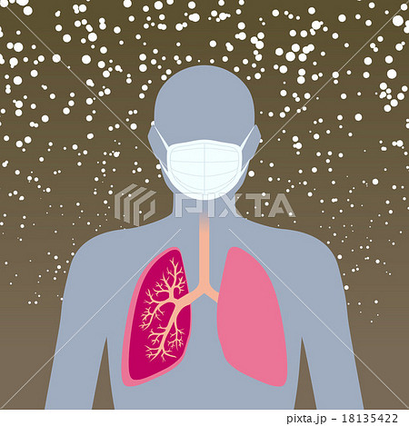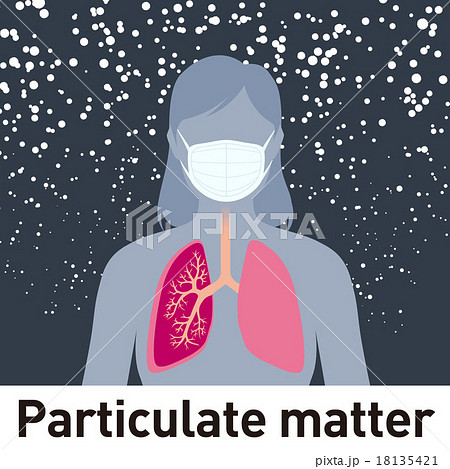 微粒子(PM2.5、黄砂、ハウスダスト)とマスク イラスト