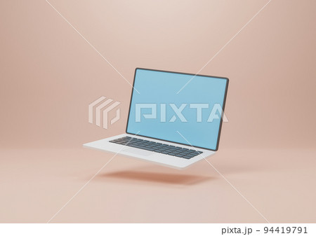 アイソメトリックな机とノートパソコンと小物のセット素材