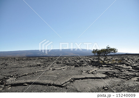 ハワイ ハワイ島 固まった溶岩のむこうにあるマウナロア