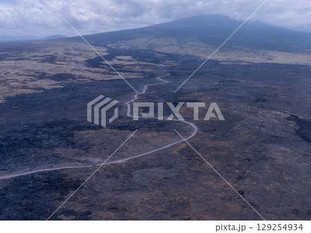 ハワイ ハワイ島 固まった溶岩のむこうにあるマウナロア
