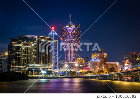 ライトアップされたマカオの豪華なカジノホテル 【中国・マカオ】