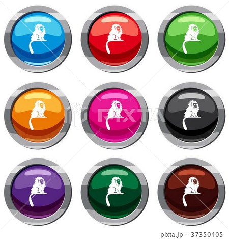Monkey sitting icon set color hexahedron