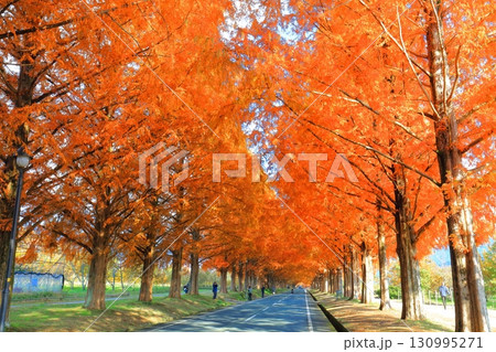 滋賀県高島市マキノの紅葉したメタセコイア並木