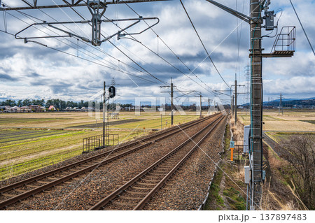 JR西日本湖西線近江中庄駅構内からの景観 滋賀県長浜市マキノ町