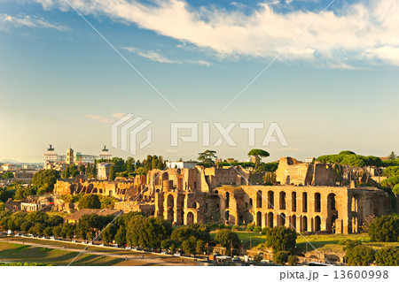 View of Circus maximus and Vittorio emanuele monument at sunset