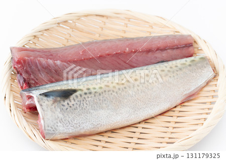 竹ざるに載せたゴマサバの切り身