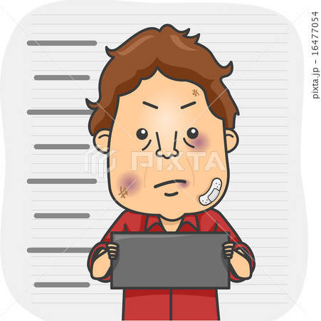 識別用のボードを持って正面と横顔を撮影される犯罪者