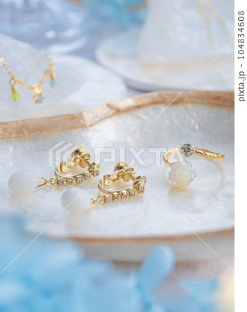 マザーオブパールのリング ホワイトジェイドのイヤリング 天然石とラインストーンのアクセサリー