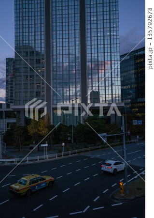 大手町のオフィス街 ビルの窓ガラスに反射する雲【ビジネスイメージ】