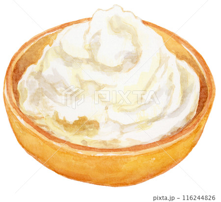 マスカルポーネチーズ、ホイップ、クリームの水彩イラスト Generative AI