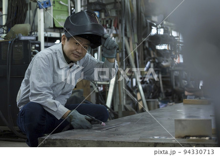 溶接工イメージ 溶接をするミドル男性作業員 TIG溶接