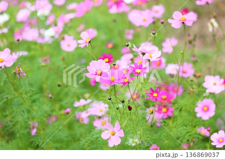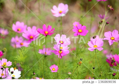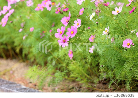 秋の公園 コスモスの花