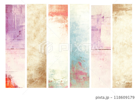 Set of banners with bright colorful watercolor stains on retro paper texture. Colorful splatter stain on cardboard background. Collection of horizontal or vertical backdrop with smeared paint