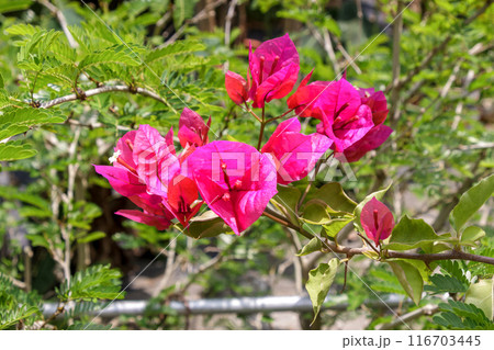 熱帯性の低木のマゼンタ色のブーゲンビリア【オシロイバナ科】