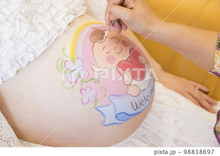ベリーペイントをする妊婦女性お腹 マタニティーペイント
