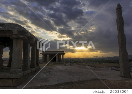 ハンピ古代遺跡群夕景
