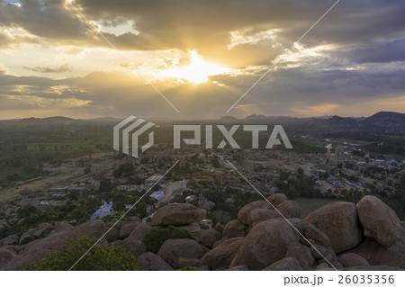 マタンガの丘よりハンピ古代遺跡群夕景
