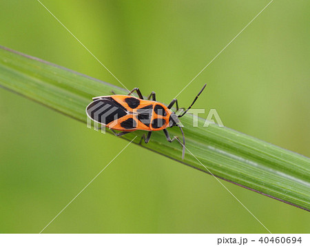 ヒメジュウジナガカメムシ 赤と黒の模様
