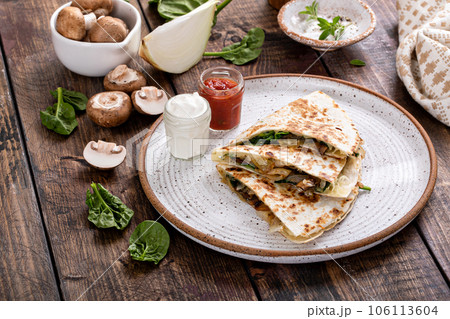 Pizza Napolitana or Naples style with mozzarella, mushrooms and spinach