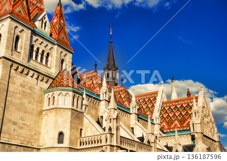 View to Matthias Church in the Castle District. Matthias Church is one of the most famous landmarks of Budapest.